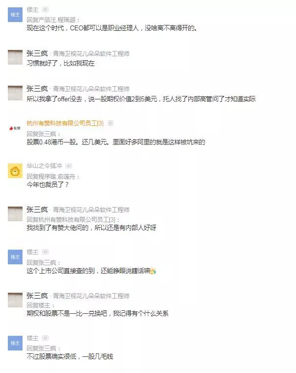 也有网友爆料到。习惯就好了,比如我现在,所以我拿了offer没去,说一股期权价值2到5美元,托人找了内部高管问了才知道实际。股票0.48港币一股。还几美元。里面好多阿里的就是这样被坑来的。我找到了某大佬问的,所以还是有内部人好呀。