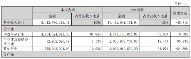 2024年8月31日,康佳披露2024年半年度报告,营收54.13亿元,同比下跌48.31%;归母净利润为亏损10.88亿元,上年同期亏损1.93亿元。