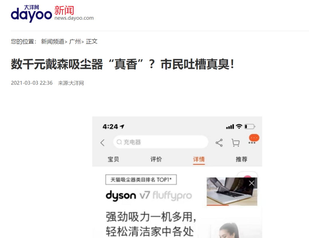 在小家电产品售后问题上,广州日报也曾报道,有消费者购买的戴森吸尘器出现发臭问题后,国行版与海外版保修政策存在“双标”的情况。