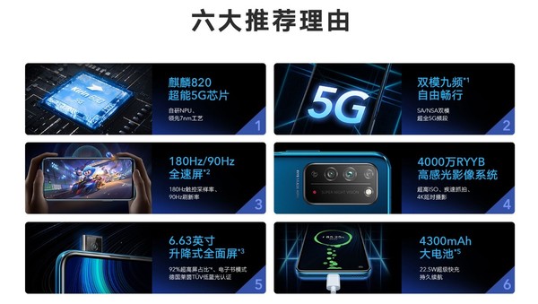 配置方面,荣耀X10搭载麒麟820 5G Soc,支持N1/N3/N38/N41/N77/N78/N79/N80/N84共计9个5G频段,为目前业界最多,可以满足未来3年国内三大运营商所有网络建设需求和海外漫游需求。后置4000万RYYB主摄+800万超广角景深镜头+200万超微距镜头的三摄模组,其中主摄使用的是4000万像素RYYB传感器,支持4合1像素,可以大幅提升夜景拍照的效果。此外,该机内置4300mAh电池,支持22.5W超级快充。