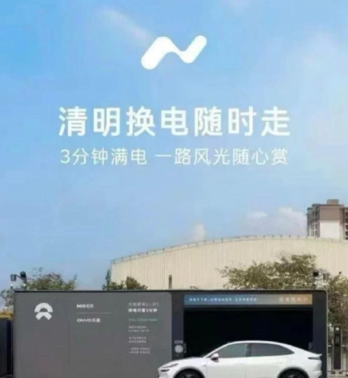 在一张乐道的换电主题海报上,写出了“清明换电随时走”的广告语。