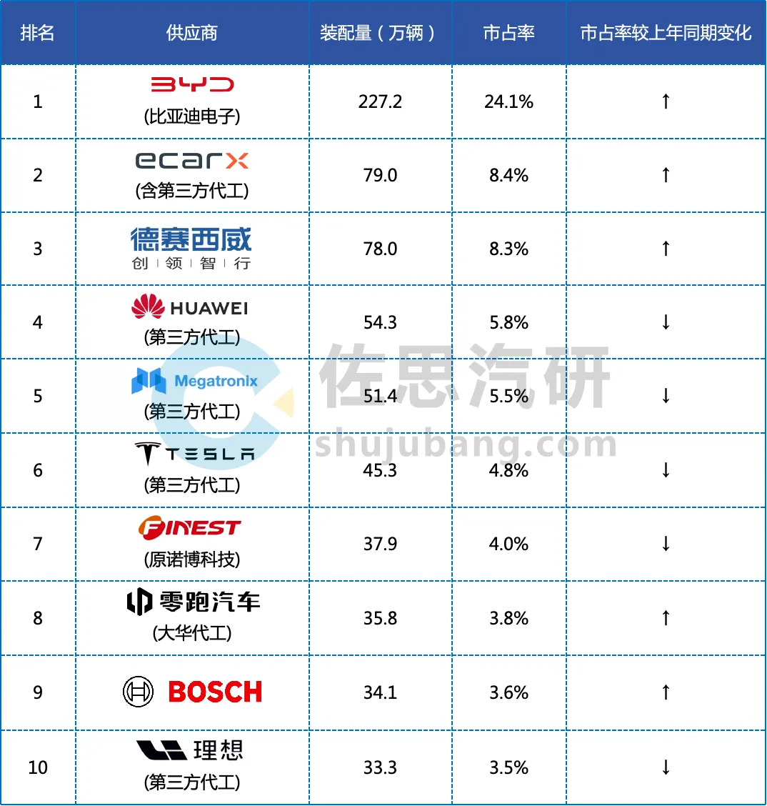 也就是说,仅仅一年时间,仅在行车ADAS供应商装机量方面,华为便将与博世的差距从原本的19%,缩减到了10.9%。而比亚迪则从第五提升至第二,市场占有率从6.1%提升至12.7%,增长了足足一倍。