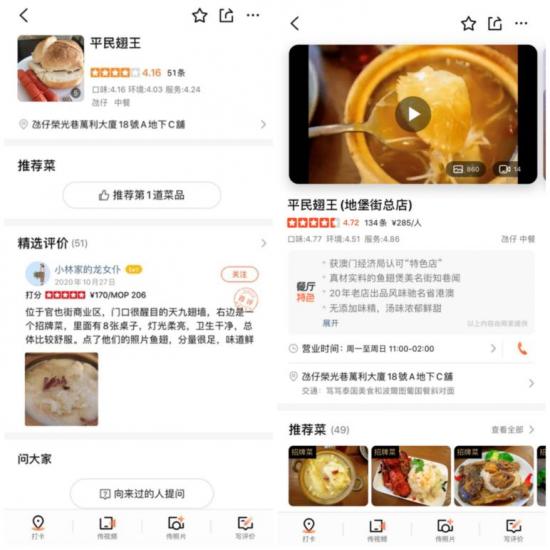 为了更好服务内地游客,改善旅游消费体验,澳门本地商户积极拥抱数字化。结合疫后消费新习惯,本地商户开通实时订座、团购套餐、网络预约购票等无接触服务,方便内地游客在出游前提前预约。大众点评数据显示,截止2021年3月,补助金覆盖到的本地特色小店相较于补贴落实前,线上门店人气增长明显,新增收藏量增长15倍。以澳门本地特色小店“平民翅王”为例,得益于澳门特区政府的补贴计划,“平民翅王”在大众点评App升级了线上门店,发放百元代金券等优惠促销活动等形式,强化了餐厅特色,吸引了大量游客到店打卡体验。大众点评数据显示,仅两个月时间,“平民翅王”就在线售出225份订单。对此,餐厅相关负责人表示很意外,认为“政府对中小商户的支持,使得餐厅名气和生意都有了新起色,对澳门旅游的恢复也起到正向引导。”