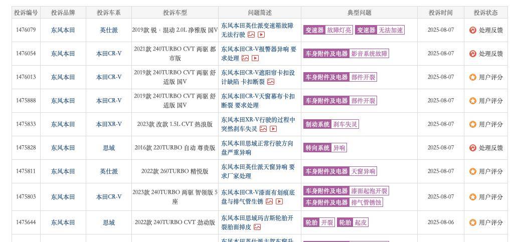 在第三方车质网投诉平台上,东风本田的质量问题投诉呈爆发态势。从后轮吃胎、底盘生锈到新车中控异响,各种问题层出不穷,厂家却往往以“正常”、“使用环境导致”等理由搪塞,拒不承担责任。这种对质量问题的漠视和对消费者权益的践踏,无疑进一步加剧了东风本田的信任危机。
