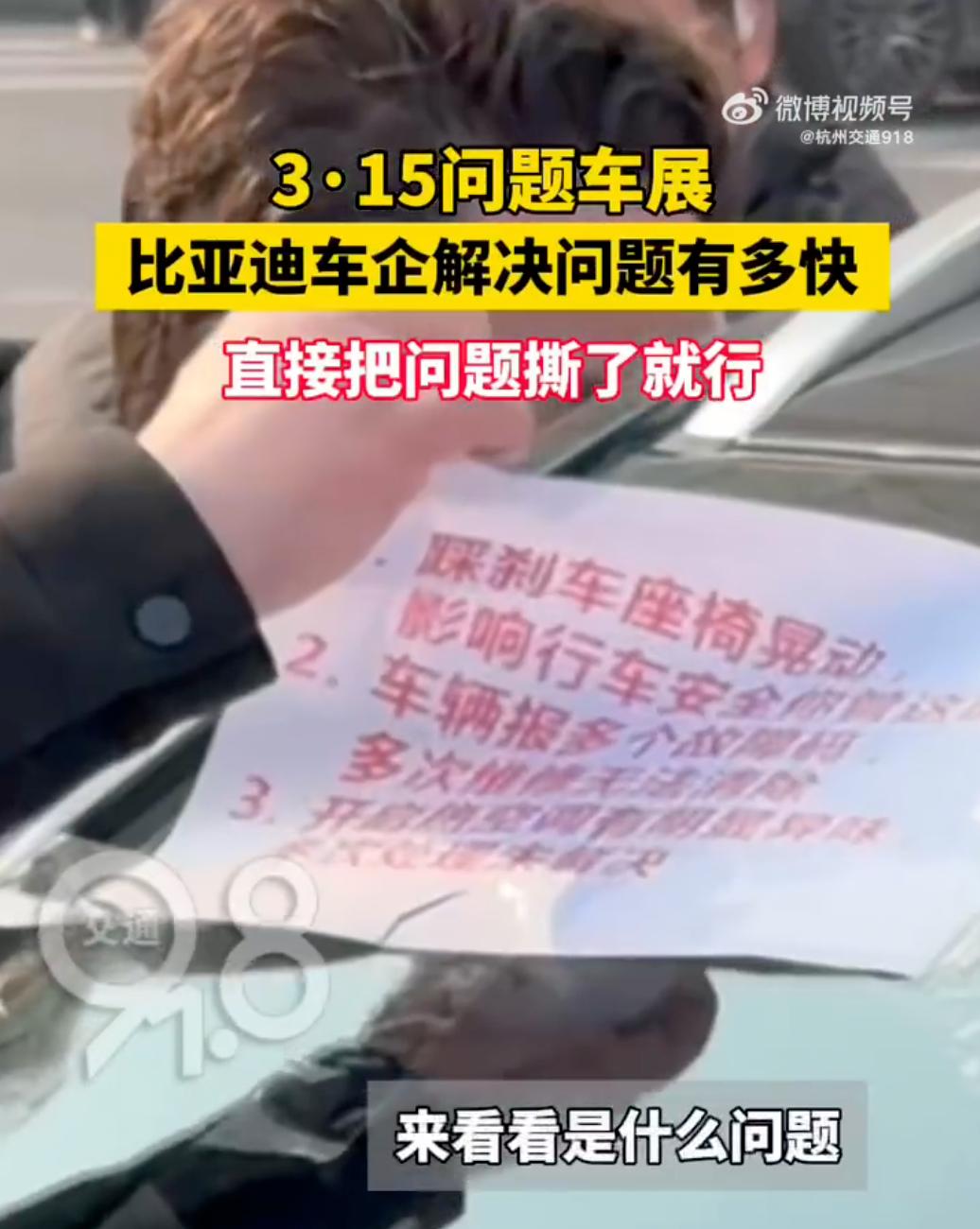 杭州315问题车展开幕,比亚迪车主遭围堵,车辆问题纸张被撕汽车
