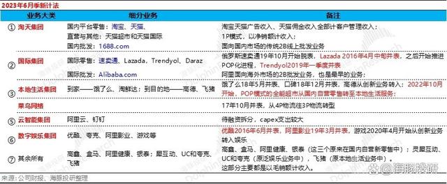 5)其余所有:各有千秋,总体一般。其他业务中无论是高鑫、盒马,还是阿里健康或者银泰,多以线下自营为主,去年疫情异常高增,今年二季度回落明显。