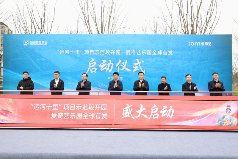3月13日,在“运河十里”项目示范段开园·爱奇艺乐园全球首发启动仪式上,扬州市委书记王进健,扬州市委副书记、市长潘国强,扬州市城控集团党委书记、董事长方璇智等与爱奇艺创始人、首席执行官龚宇一同推杆启动,宣布爱奇艺乐园项目正式从扬州启航。