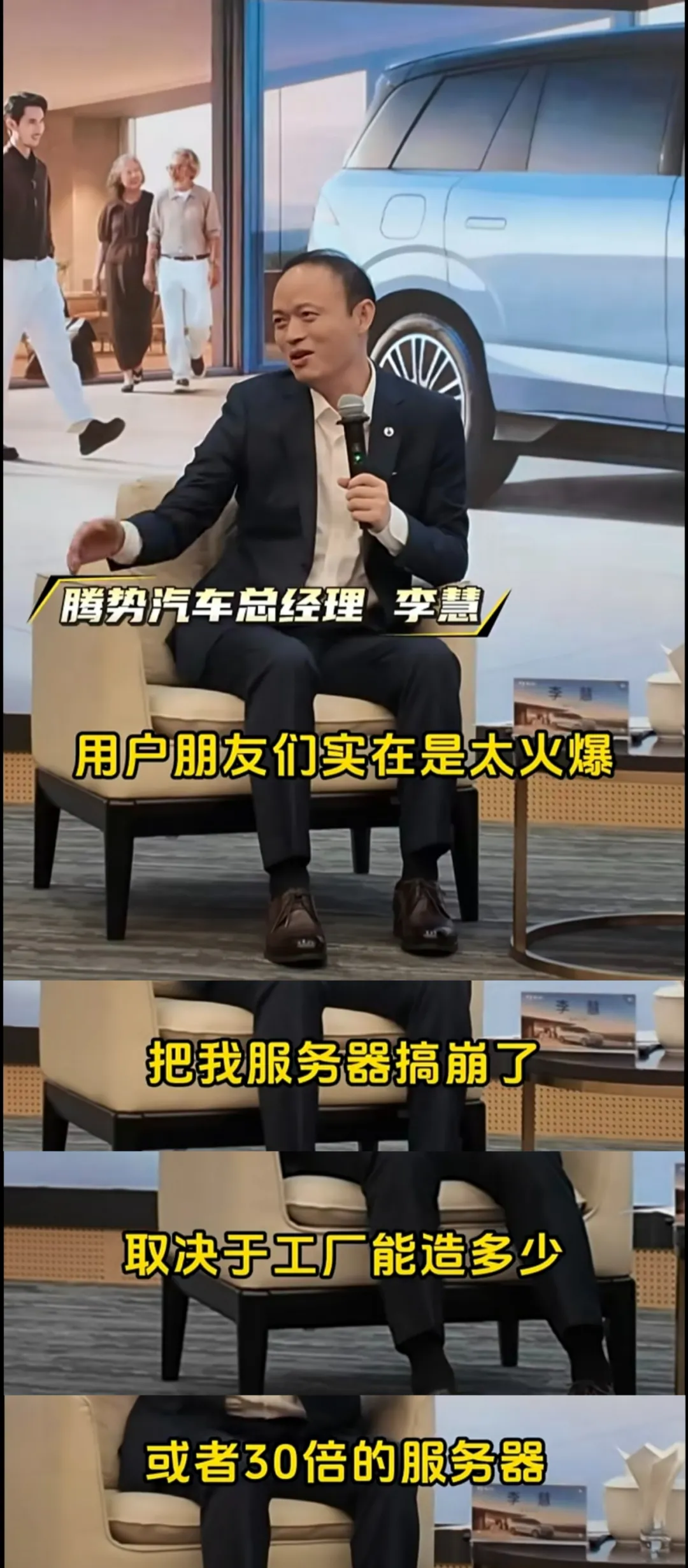 二则,李慧自己也说了,在新车上市前,为了迎接新车可能“爆单”的场面,腾势汽车已经提前把服务器增加了10倍;