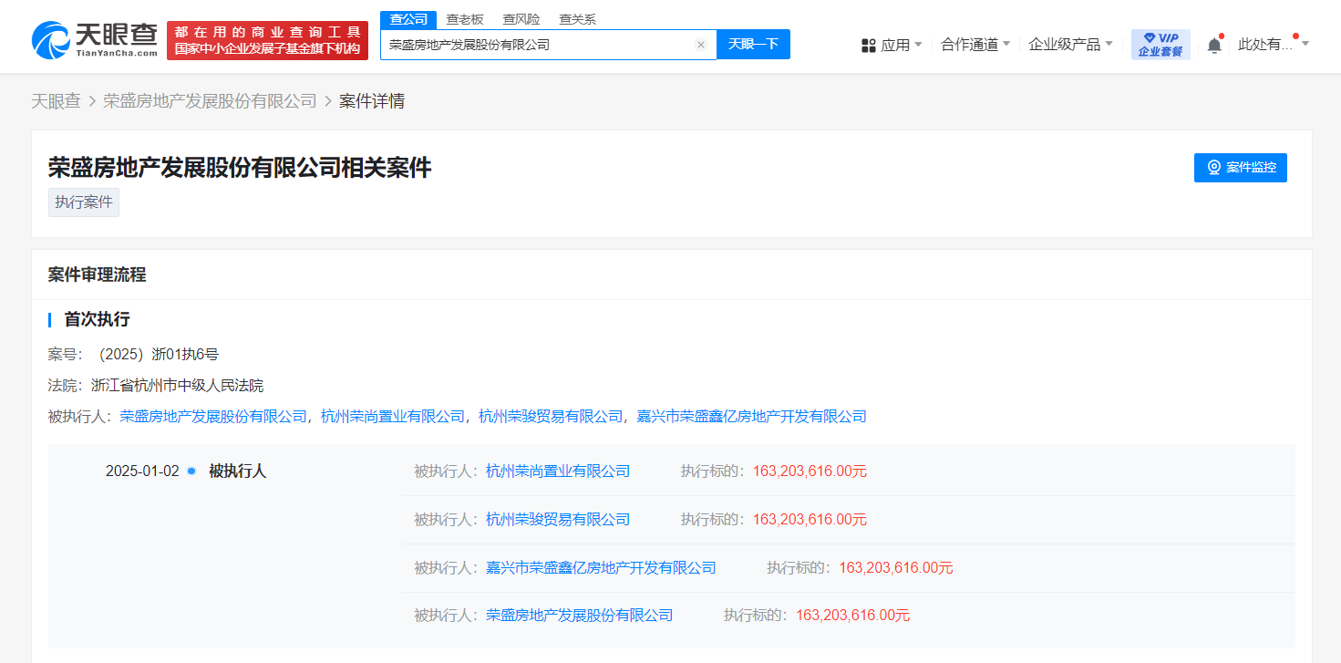 荣盛发展等被强制执行2.06亿观点