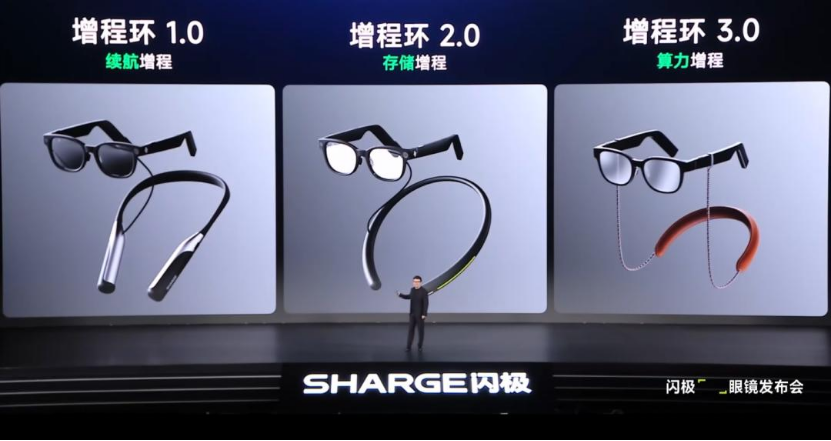 比如闪极科技在去年底提出了AI眼镜增程式续航解决方案,其AI眼镜增程环可以支持用户边充边戴,还能给手机等硬件产品反向充电。