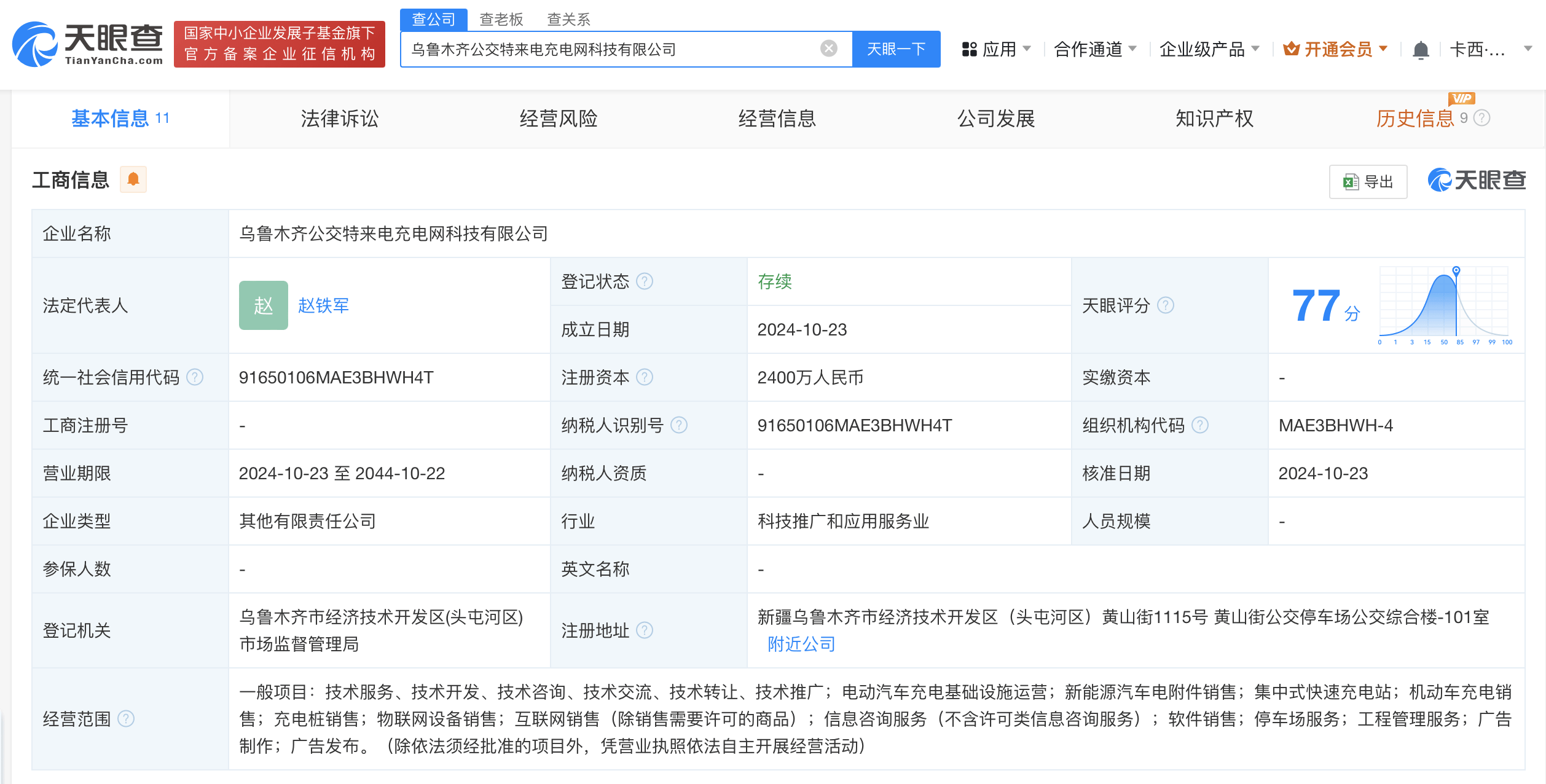 特来电等在乌鲁木齐成立科技公司 注册资本2400万观点