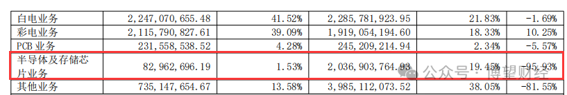 半导体业务方面,尽管康佳在半导体领域已经投入多年,但迄今为止,仍未能实现规模效应。2024年上半年半导体及存储芯片业务收入占营收比仅为1.53%,同比降幅95.93%。