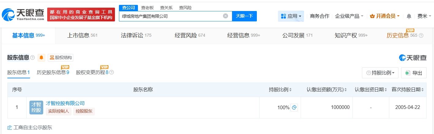 该公司成立于1995年1月,注册资本100亿人民币,经营范围为房地产开发、经营、管理,由才智控股有限公司全资持股。