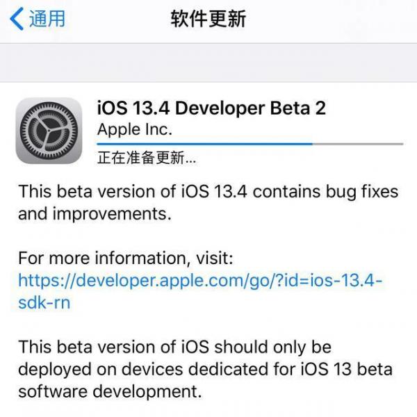 这不苹果于今天凌晨推送了iOS/iPadOS 13.4开发者预览版Beta 2,距首个预览版的更新已过去两周时间。本次iOS更新包含有多项设计更改和功能调整并修复了一些bug。已经安装了iOS 13测试版描述文件的用户可打开设置--通用--软件更新直接在设备上OTA升级,还未安装测试版描述文件的则要先安装才能收到测试版的更新推送。