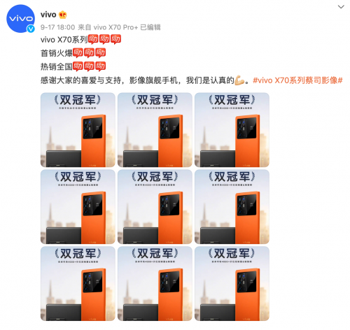 vivo X70系列深谙手机摄影爱好者实际使用痛点,凭借卓越的夜景能力,轻松捕捉到夜景的精彩与细节。不仅获得媒体的高度肯定,还成功圈粉众多明星、导演、摄影师。出场即顶流的vivo X70系列还有着开售12小时销量迅速问鼎九大电商平台的骄人战绩,凸显其影像旗舰地位,更在消费者心中树立下“手机影像NO.1”标签,而这些都承借水到渠成之势。