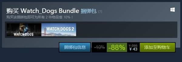 《看门狗》+《看门狗2》捆绑包折后43元。