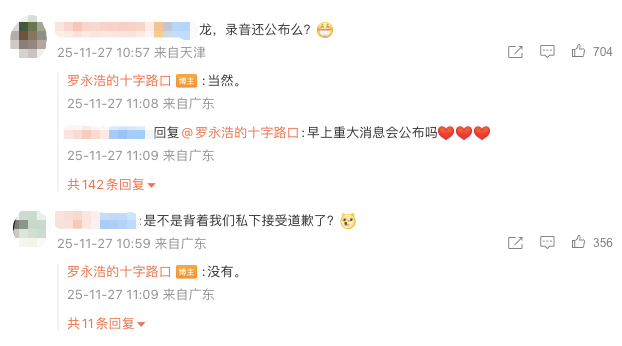 也有网友问:“是不是背着我们私下接受道歉了?”罗永浩回复称:“没有。”
