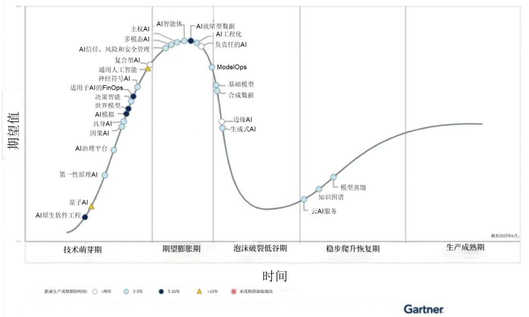 图注:2025年人工智能技术成熟度曲线 来源Gartner(2025年8月)