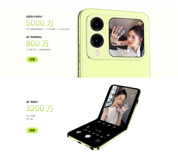 配置方面,华为nova Flip采用了玄武水滴铰链,后置5000万像素主摄+800万像素超广角双摄系统,其中主摄拥有F1.9大光圈和1/1.56英寸的大尺寸传感器,无论是在光线复杂的夜景还是逆光条件下,都能轻松捕捉到清晰、生动的照片,满足年轻用户对高质量影像的追求。不仅如此,该机还支持多角度自由拍,让年轻人能够以更大的角度和更多元的视角记录生活,一键拍出具有强烈氛围感和个上性风格的照片。此外,该机内置了4400mAh电池,支持66W快充。