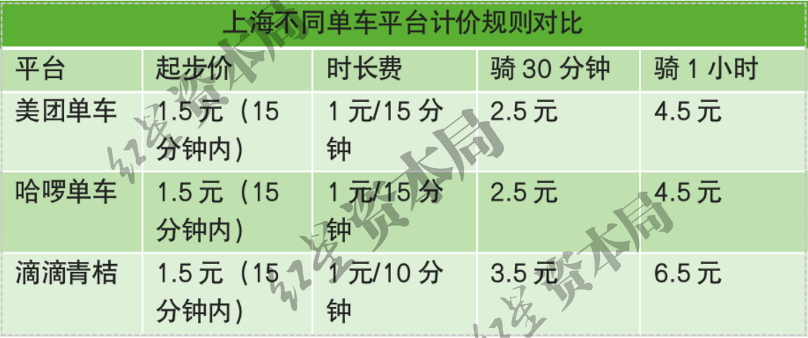 根据红星资本局整理的资料,今年1月23日起,美团在成都地区实行新的计价标准,之前起步价1.5元包含时长为30分钟,如今调整为15分钟;超时加价从1.5元/30分钟调整为1元/15分钟。这也是目前很多城市的收费标准:起步价1.5元含15分钟,超出15分钟后每15分钟加收1元。