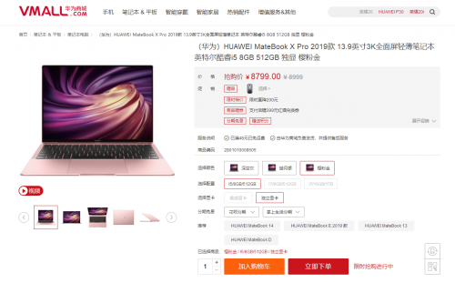 据悉,MateBook X Pro樱粉金已于5月15日也就是今日0点正式开卖,目前仅提供i5/8GB/512GB版本,原售价8999元,西安阿紫购买优惠200元,到手价为8799元,喜欢的朋友可以关注一下。