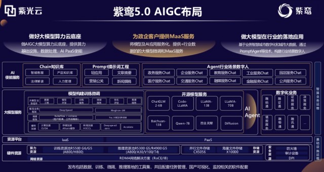 随着AI产业爆发,各行各业都将被AI重塑,而AI的发展离不开算力的支撑。紫鸾5.0围绕PaaS+MaaS+SaaS进行产品布局,为AIGC落地提供全面支撑。
