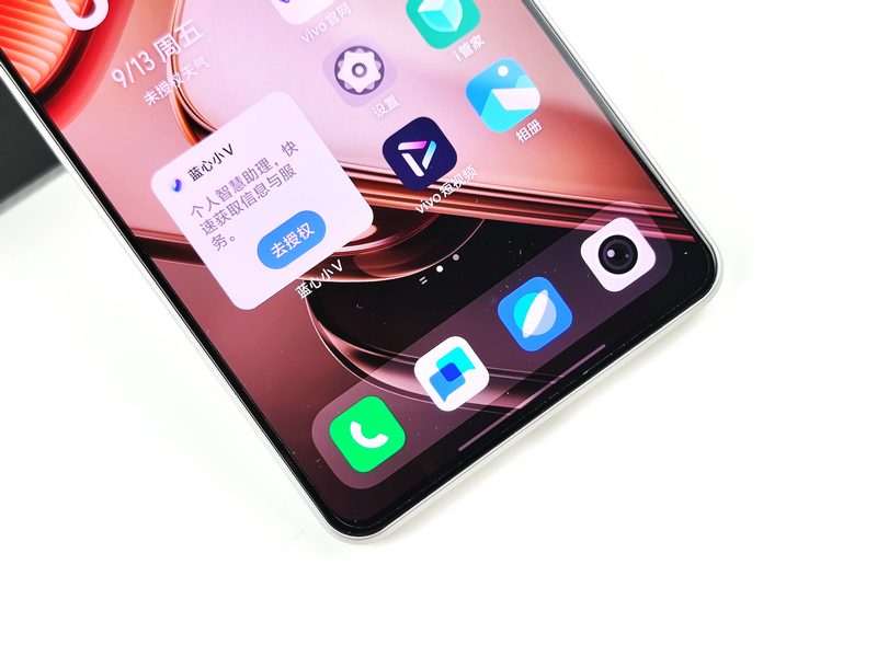 机身背部,该机采用了类AG工艺的处理方式,触感丝滑细腻,并带来了曜夜黑、星光白以及月影钛三款配色,笔者拿到的是月影钛配色版本,在光线配合下可以呈现出雾面的质感,无论是手感还是颜值都非常在线。