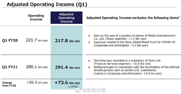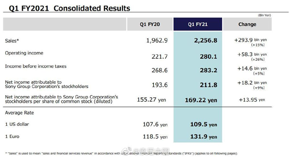 今日,索尼公司发布2021财年第一季度(4-6月)财报。