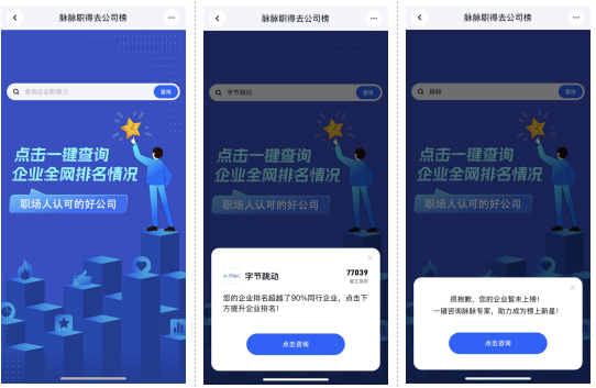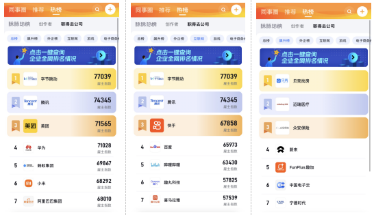 近期,脉脉“职得去公司榜”上线一键查询功能。用户输入想要查询的公司名称,即可获取该公司的雇主指数、全网排名和在榜情况。