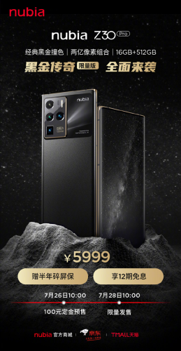 5999元!努比亚Z30 Pro黑金传奇限量版预售:2亿像素影像旗舰!快报