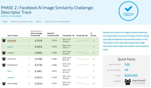 【TechWeb】12月16日消息,日前,由国际人工智能顶会NeurIPS 与 Facebook AI联合举办的图像相似匹配竞赛ISC2021落下帷幕。本次比赛共有1635支参赛队伍参加,来自蚂蚁集团的TitanShield Team(titanshield2)斩获图像表征赛道冠军。
