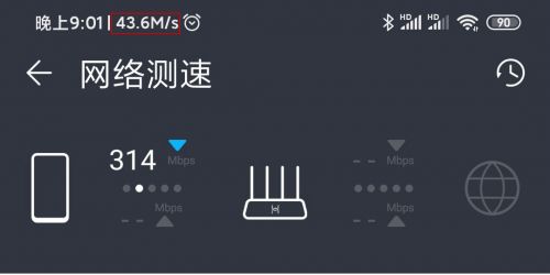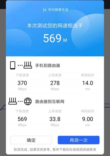 既然已经升级到了500M光钎,而且同时作为一个强迫症用户,就要尽可能压榨500M宽带每一分价值,二话不说换上华为路由A2,直连家里千兆网线端口,通过智慧生活APP对网络进行简单适配后,用自带APP测试当前网络速度。