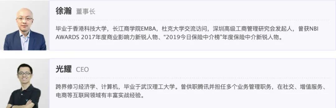 小雨伞保险经纪成立于2015年1月,创始人包括徐瀚、光耀和韩立炜,分别担任董事长、CEO和CTO。