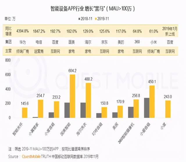 根据QuestMobile发布的《2019年流量增长盘点》报告中披露的数据显示,当前智能设备APP的行业用户规模已接近1.2亿,同比增长高达16.8%。