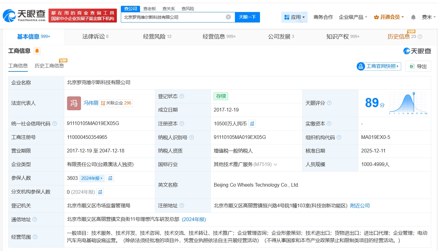 天眼查工商信息显示,理想汽车关联公司北京车和家信息技术有限公司成立于2015年4月,法定代表人为冯伟丽,注册资本约2.8亿人民币,经营范围包括基础软件服务、应用软件服务、经济贸易咨询等。股东信息显示,该公司由李想、李铁共同持股。对外投资信息显示,该公司对外投资11家企业,其中6家企业处于存续状态,其余5家企业已注销。值得一提的是,近期,理想汽车旗下理想智造汽车服务(上海)有限公司、北京励鼎汽车销售有限公司、北京罗克维尔斯科技有限公司均发生减资行为。