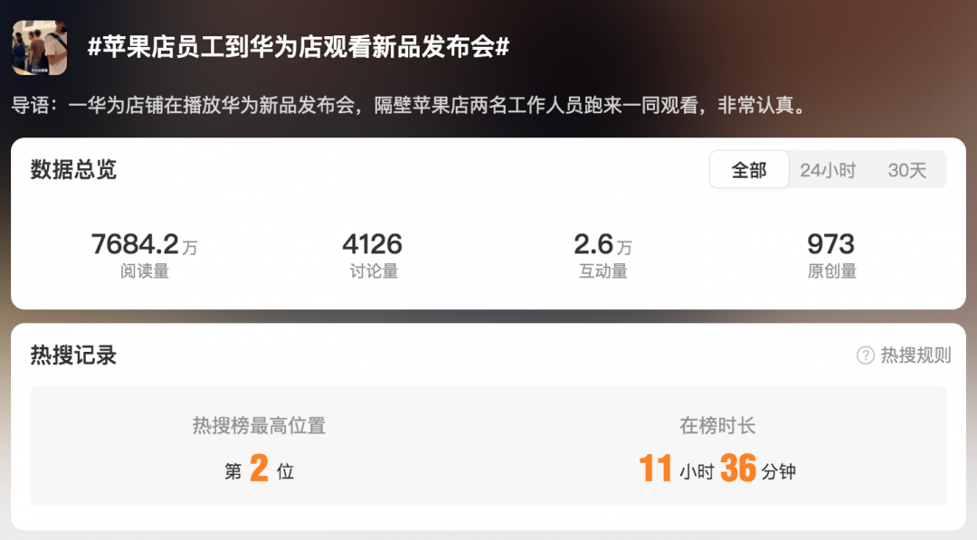 “苹果店员工到华为店观看新品发布会”上热搜 网友:又遥遥领先了快讯