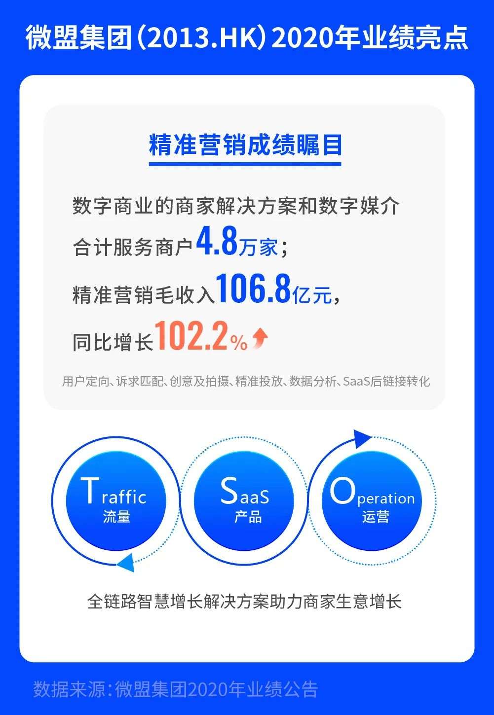 增效方面:通过为商家提供从数据分析、诉求匹配、创意及拍摄、流量投放、SaaS系统转化与留存的一站式运营闭环,微盟得以进一步实现智能经济营销的全链路价值。