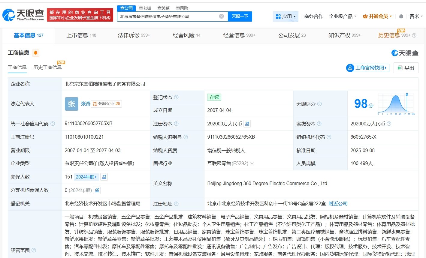 该公司成立于2007年4月,法定代表人为张奇,注册资本29.2亿人民币,经营范围包括机械设备销售、五金产品零售、五金产品批发等,由缪钦、李娅云、张雱共同持股。