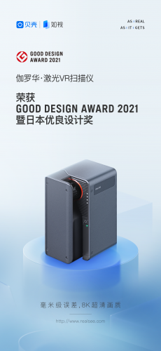 继斩获2021红点产品设计大奖、2021世界VR产业大会VR年度创新奖之后,贝壳如视自研激光VR扫描仪伽罗华再传喜讯,入选日本最高设计奖GOOD DESIGN AWARD(简称G-Mark)。