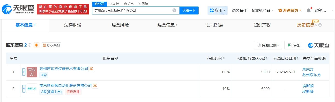 京东方、埃斯顿在苏州成立驱动技术公司 注册资本1.5亿观点