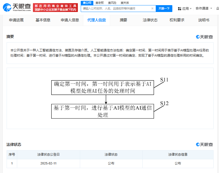 天眼查App显示,2月11日,北京小米移动软件有限公司申请的“一种人工智能通信方法、装置及存储介质”专利公布。