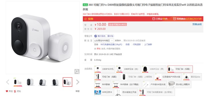 IT之家5月14日消息 今天上午,360发布了可视门铃1C。同时,该产品已于各大平台开启预售,首发价269元,预售到手价229元。