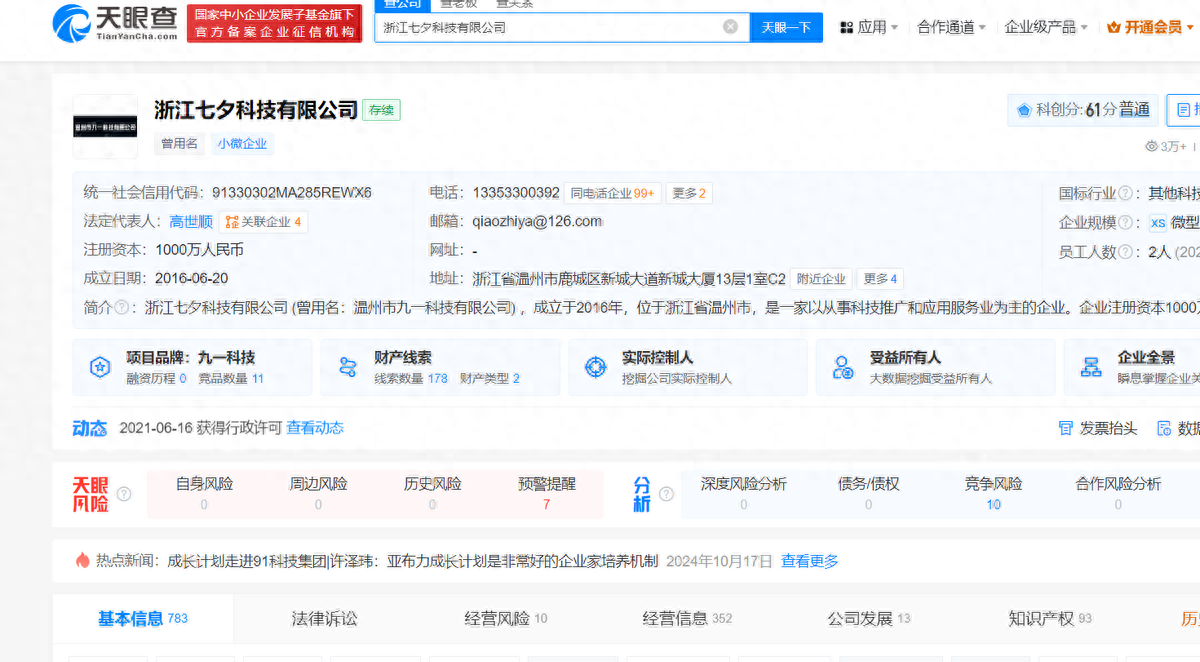 带着好奇心,我点进了首页一看,好家伙,这货原来就是之前搞出酱香安全套和有Money味安全套的那家公司!天眼查APP显示,双11牌隶属浙江七夕科技有限公司。