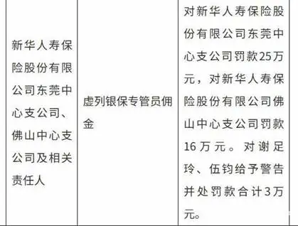 其中,东莞中心支公司、佛山中心支公司,均因虚列银保专管员佣金,而被广东金融监管局处以罚款,处罚金额合计41万元。