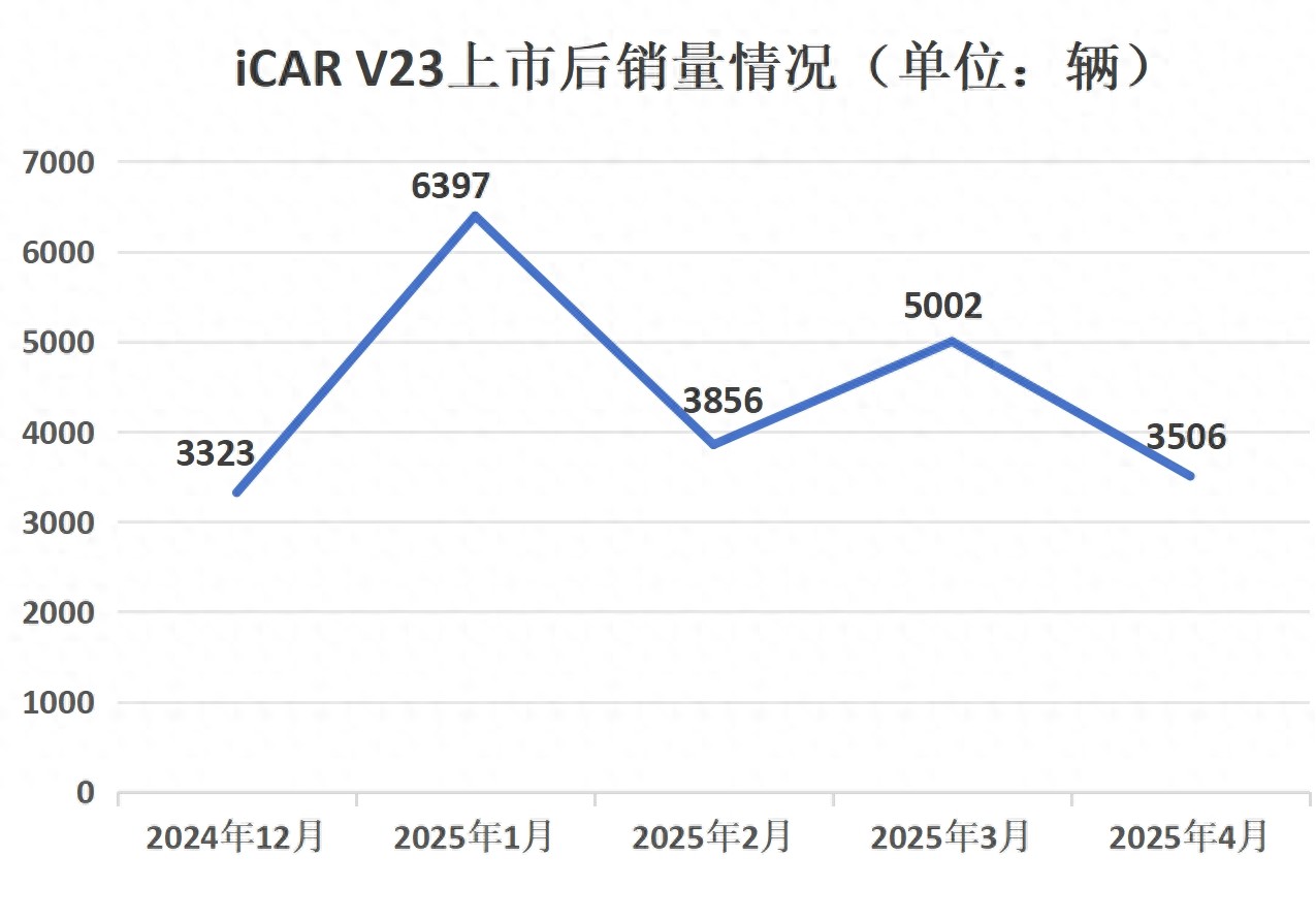 如今的很多年轻人都喜欢个性的“方盒子”SUV,为了满足消费者需求,奇瑞信心满满地打造出硬朗炫酷的iCAR V23车型,本以为这车凭借高颜值能够捕获大多用户的目光,结果去年12月刚上市时却惨遭“骂声一片”,新车上市至今月销量最高仅有6397辆,今年4月份销量已经下跌至3506辆,着实是“火不过3个月”。