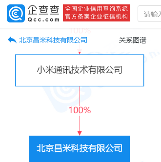 企查查股权穿透显示,该公司由小米通讯技术有限公司100%控股。