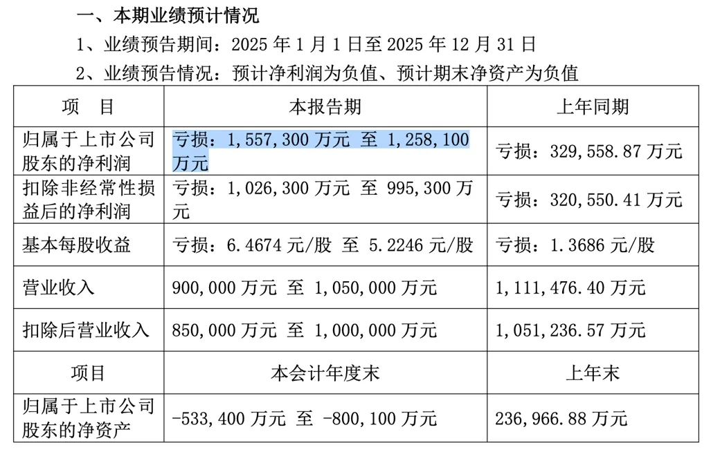 1月30日晚间,老牌家电巨头深康佳A发布公告,预计2025年归属于上市公司股东的净利润为亏损155.73亿元至125.81亿元,上年同期为亏损32.96亿元。