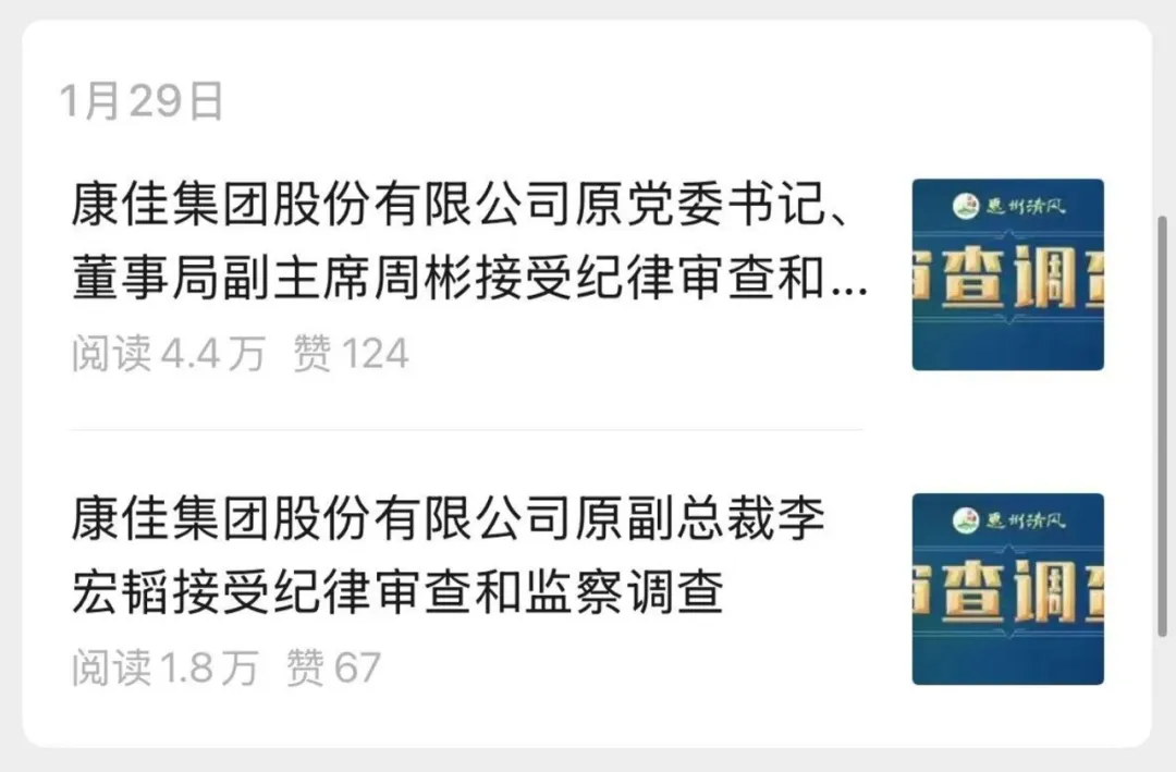 更严重的是,内部管理问题也浮出水面。据惠州市纪委监委 2026 年 1 月 29 日通报,康佳集团原党委书记、董事局副主席周彬,以及原副总裁李宏韬,因涉嫌严重违纪违法,已接受纪律审查和监察调查。