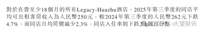 但拨开规模扩张的表象,核心经营指标的真实状态并不乐观。最能反映存量门店经营效率的同店RevPAR(平均可出租客房收入)同比下降4.7% 。其中,同店日均房价(ADR)下跌2.3%,同店入住率下跌2.1个百分点 。