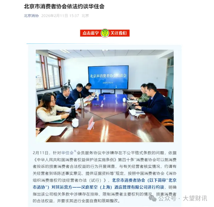 这是一条看似普通的法律条款,藏在华住会长达数千字的会员服务协议中。直到2026年2月11日,北京市消费者协会(以下简称“北京市消协”)的一纸约谈,才将这条“强制仲裁”条款拉入公众视野。